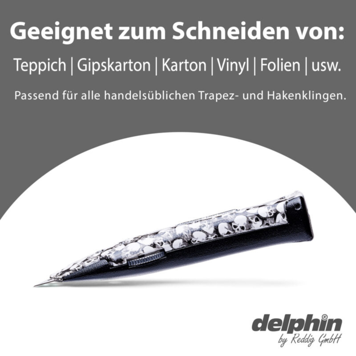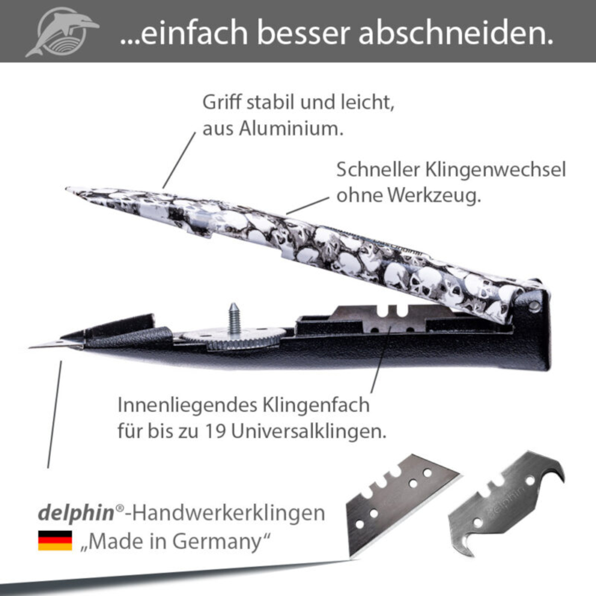 Delphin® 03 - Universalmesser Das Original, mattschwarz/weiß Totenkopf