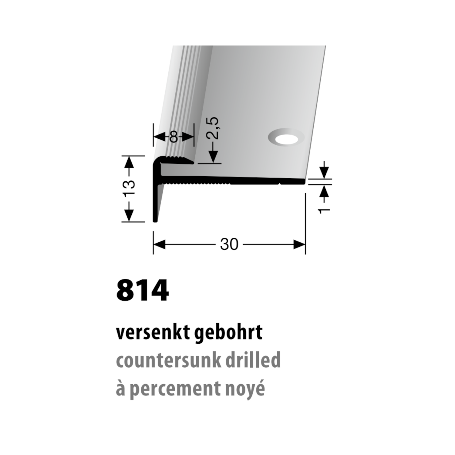 Küberit Alu Einfassprofil Typ 814, 250 cm, edelstahloptik (F2)