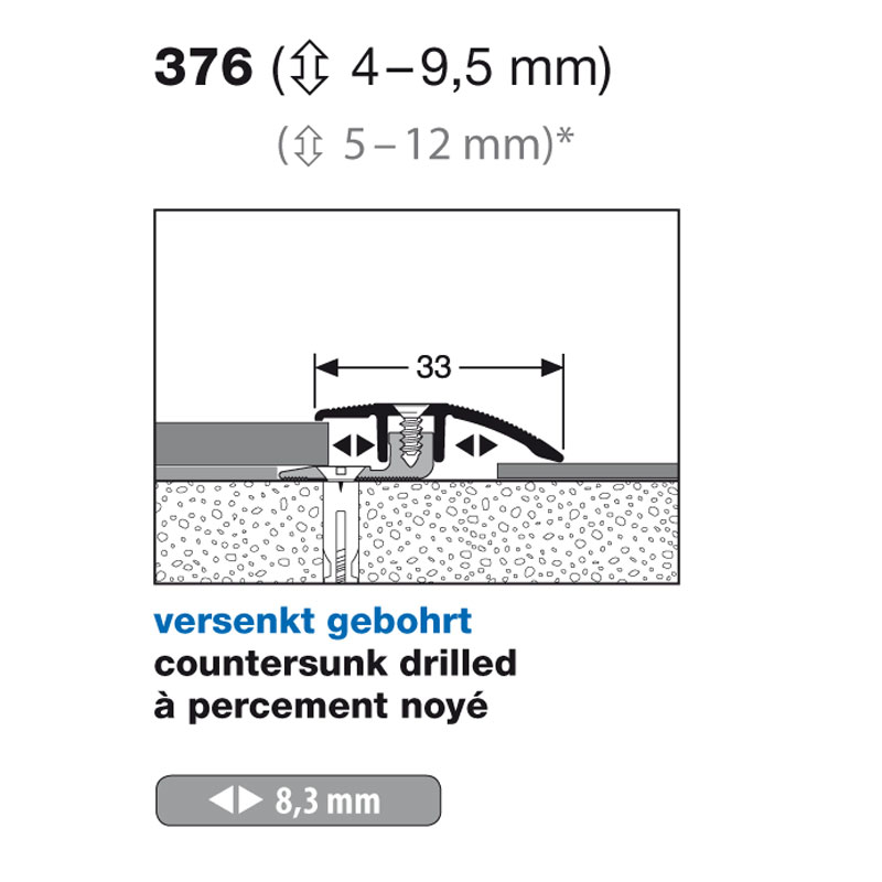 Küberit Anpassungsprofil PPS-Champion Star Typ 376, 4-9,5 mm, 270 cm, edelstahloptik (F2)