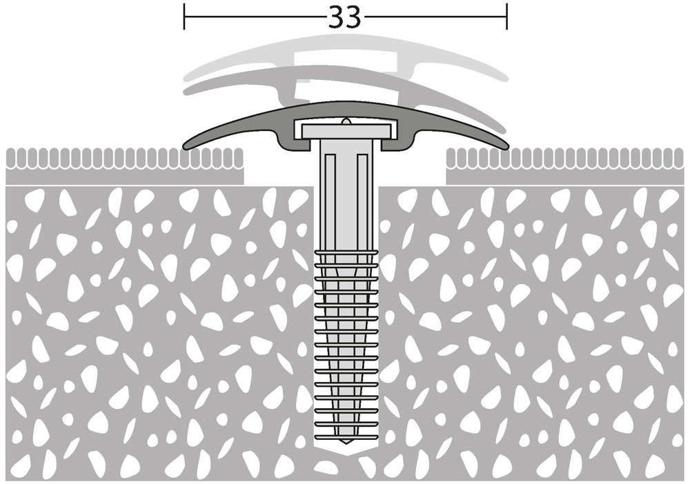 • Dübelsystem, bestehend aus Aluminium-Oberprofil mit verdeckter Befestigung durch Nylon-Lamellendübel.
