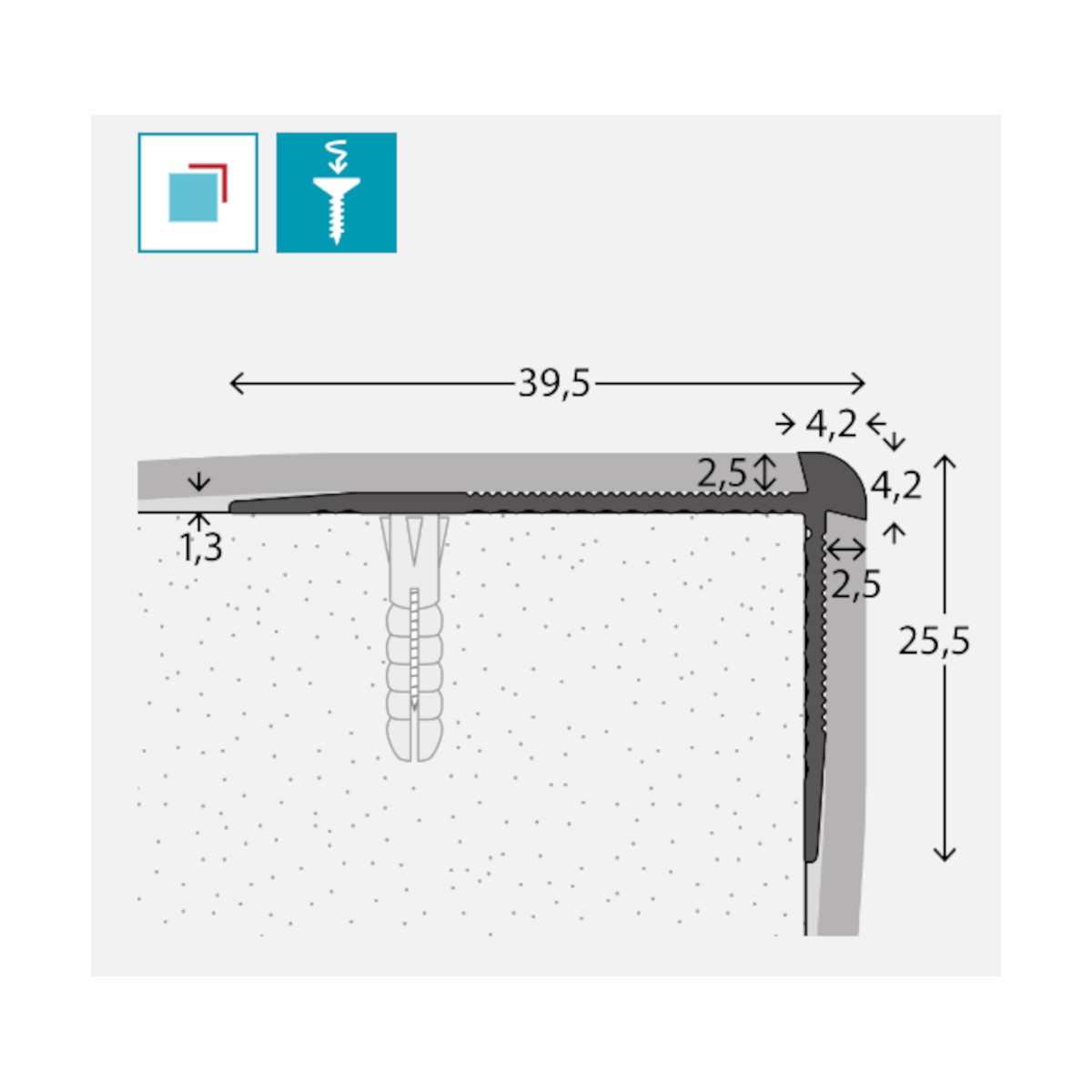 PRINZ Treppenkantenprofil Nr. 287, 2.5 x 39.5 x 25.5 mm