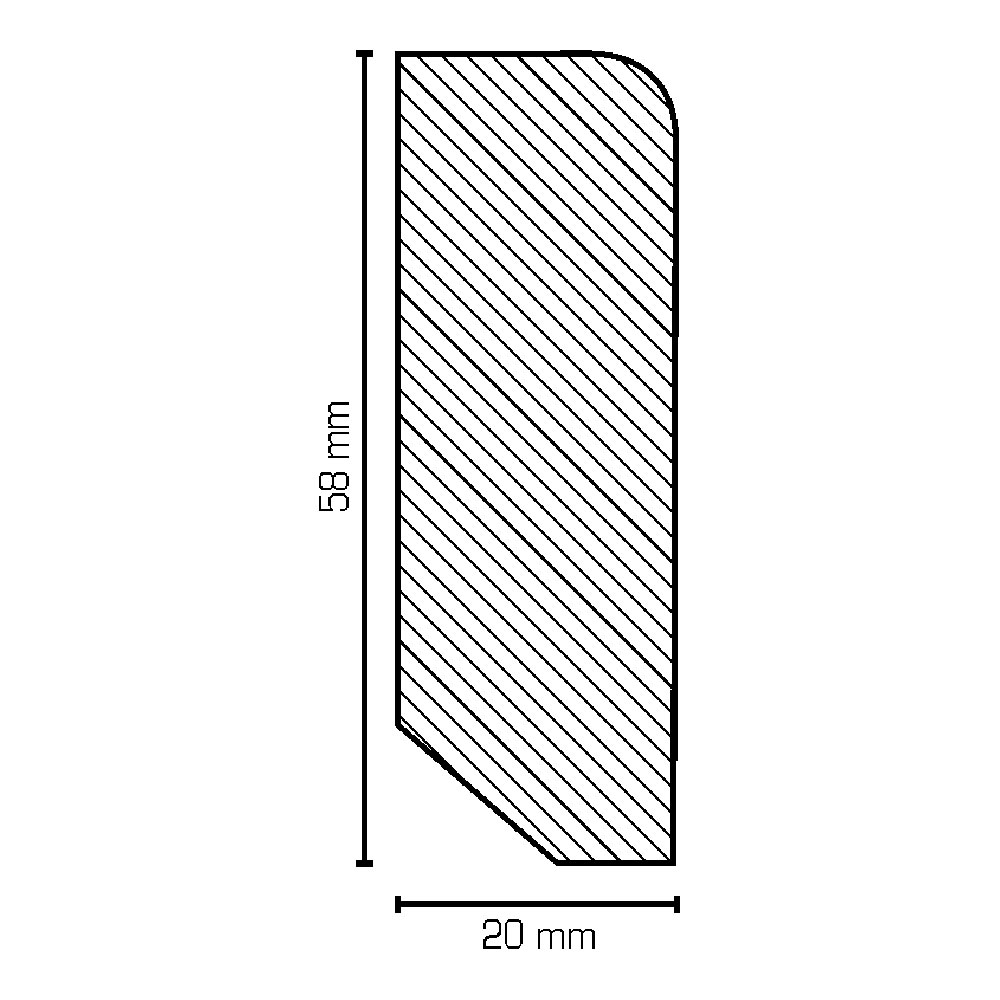 SÜDBROCK Massiv Holz-Fußleiste 20 x 58 mm abgerundet